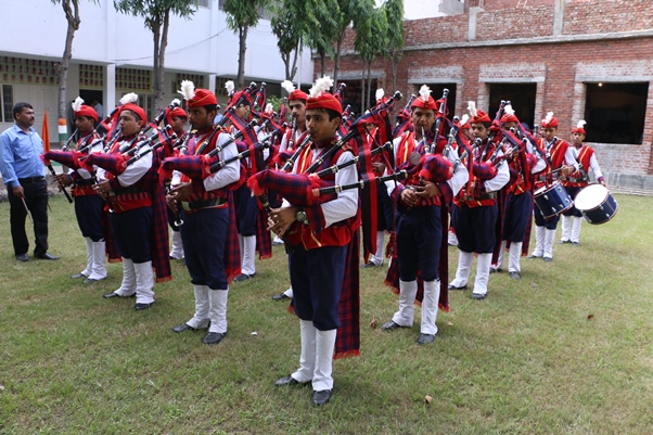 The Band (Ghosh) of SBM Sr. Sec. School was started from the very inception of the school. The students are taught to play different instruments such as Brass Drum, Side Drum, Bigul, Triangle and Cymbals etc. The band is divided into 5 groups, each containing 59 students. In addition to that a Bagpiper band including a group of 33 students is also in function separately. Each group of the band including Bagpiper band has its separate uniform. Each band group has a major (Head Boy) who commands the entire band. They are being trained twice a month. The Bagpiper band is trained to play different tunes like Saare Jahan Se Achchha Hindustan Hamara, Invention etc. The band of SBM has taken part in various ceremonies conducted by the District Authorities like Education Dept., Police Dept, and Election Dept. etc. The school band had participated on the first anniversary of District Panchsheel Nagar (Hapur) conducted by the District Administration, where it stood first among the dozen school bands of the district.